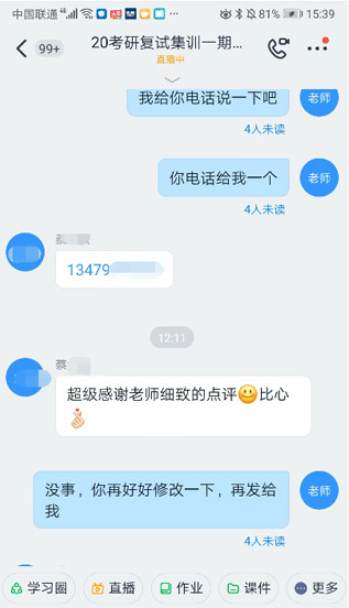 | 英语复试辅导 | 1、口语发音修正、常考话题讲解 2、个性化设计自我介绍 3、英语模拟考场 |